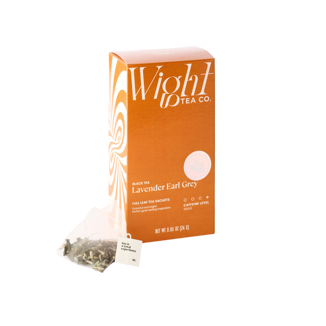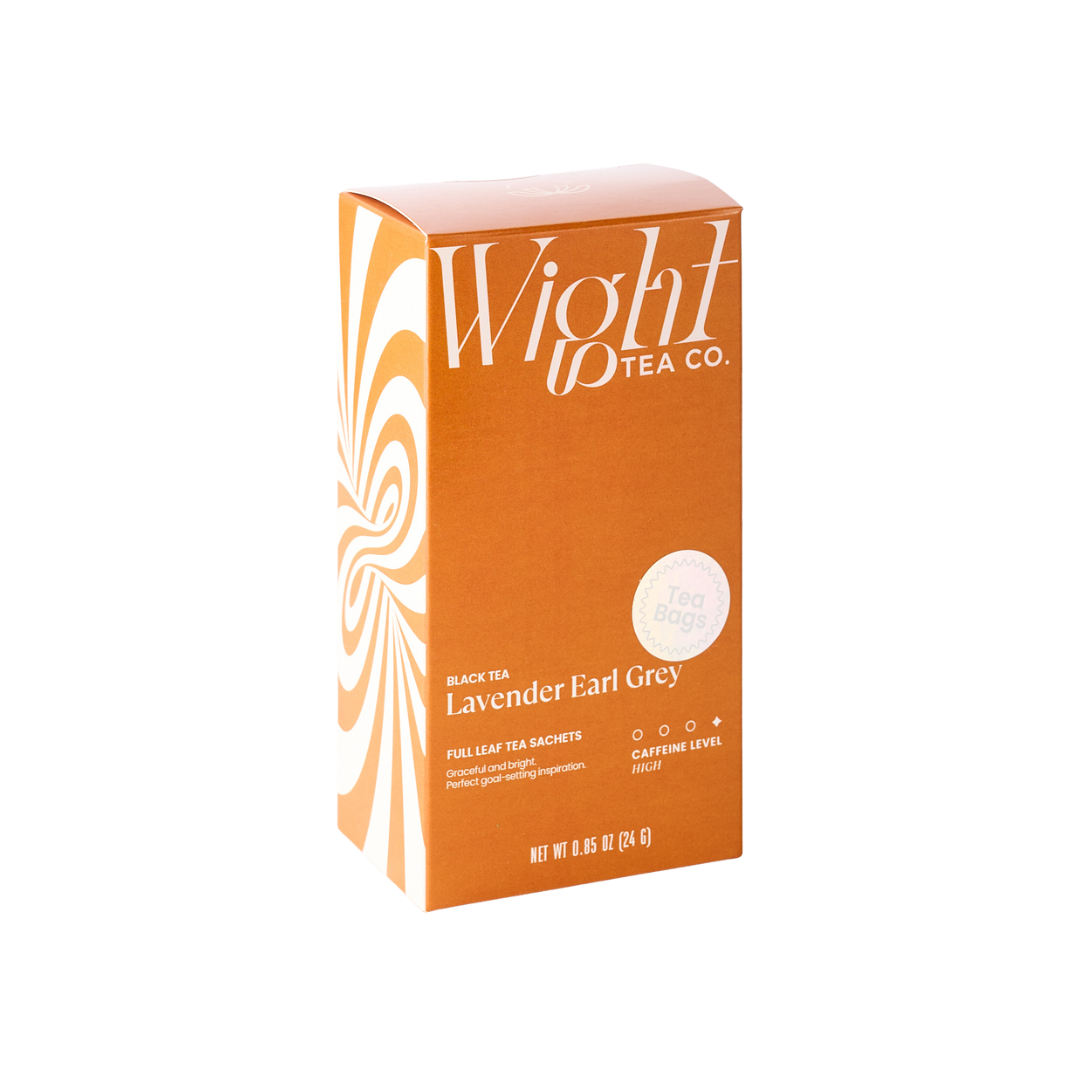 A sophisticated twist on a classic. Caffeinated Earl Grey Black Tea with bold Lavender, now in a convenient compostable pyramid sachet!